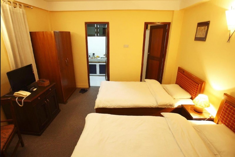 Preferred by longer staying people who wish to cook their own breakfast and prepare small lunch on their own. The room is equipped with private bathroom, LED Flat Screen TV, Telephone, kitchenette with two ring electric hob, microwave, mini refrigerator, electric kettle and complementary Wi-Fi access. The room comprises of one large bed as well as two single beds. This room does not include breakfast.